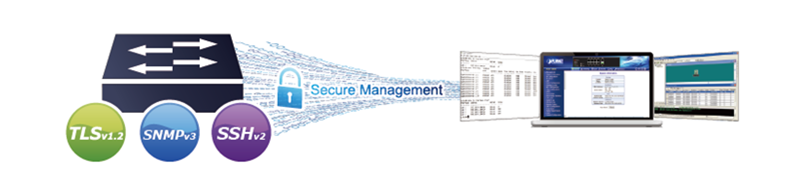 | 它配備了 SSHv2、TLSv1.2 和 SNMPv3 ,提供針對高級威脅的強大保護,並將安全風險降至最低。 | ||